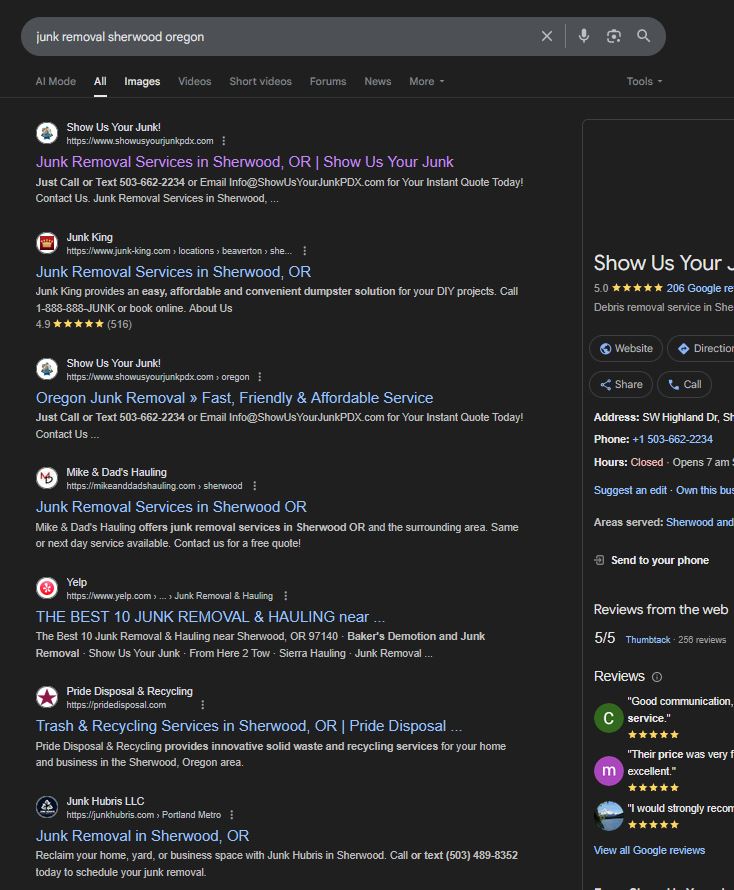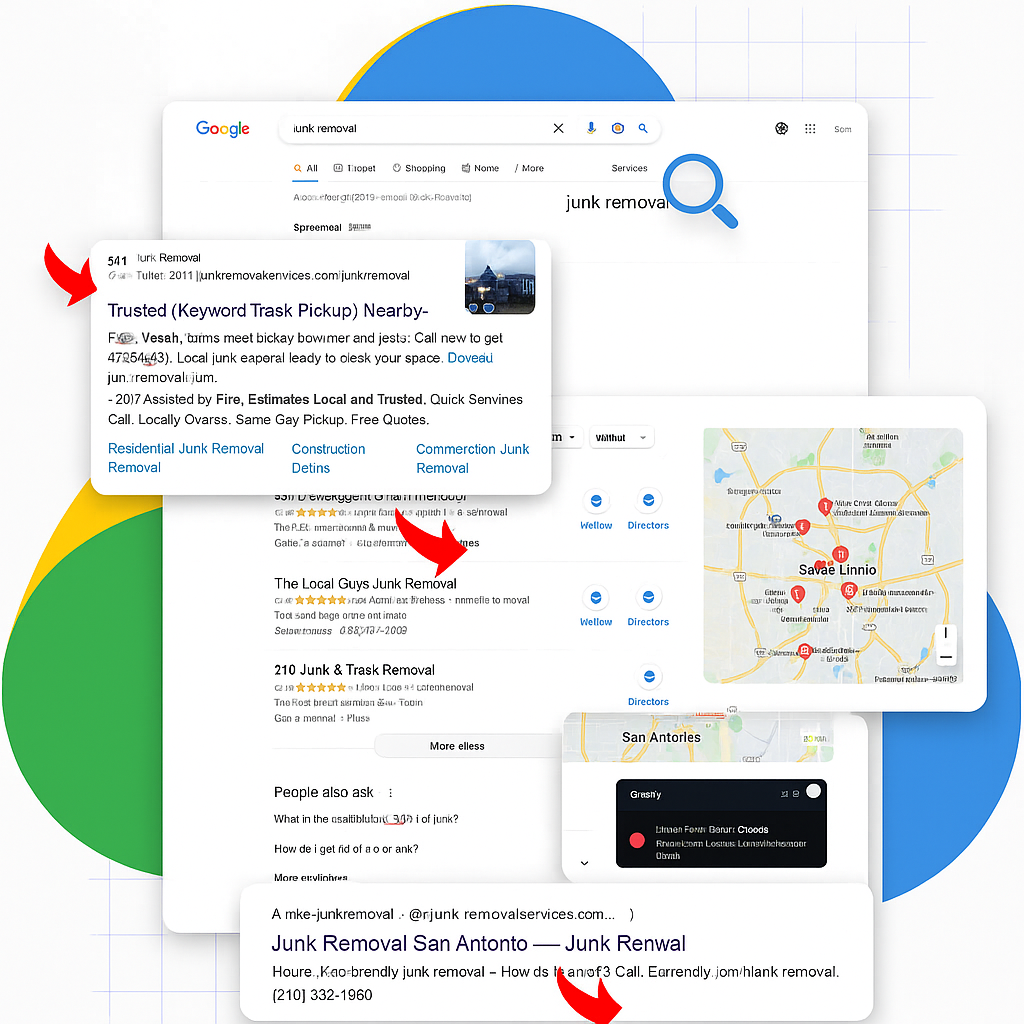 Climb to the top of Google search results so local customers find you first when they search for junk removal near me.